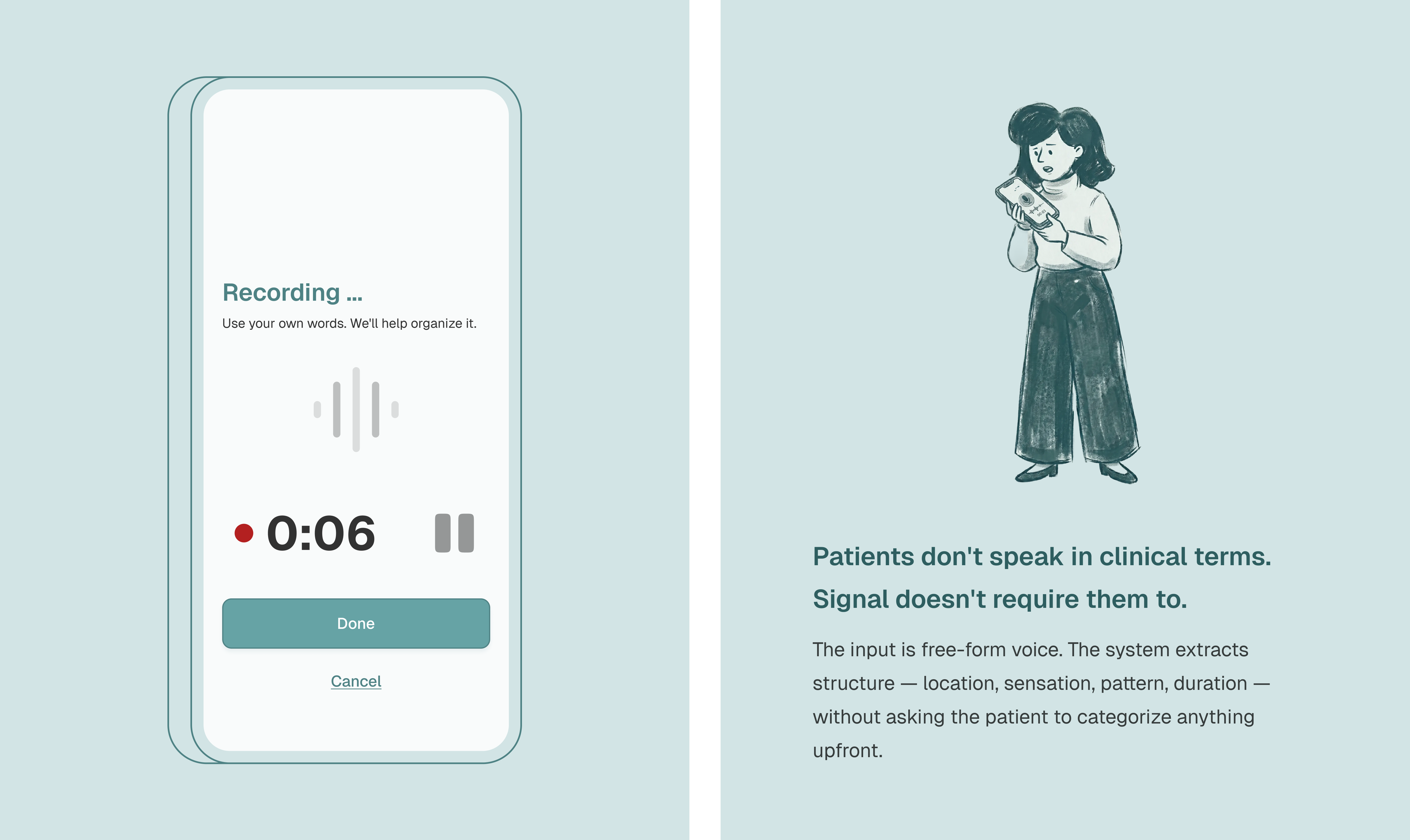 Signal is a behavioral intervention designed as a product: It aims to lower avoidable Emergency Department (ED) costs for insurers and mitigate consultation inefficiency for clinics by shifting patient behavior from self-diagnosis to structured observation in the hours and days before they seek care.